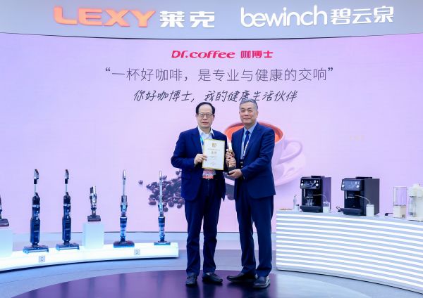 中国家用电器协会理事长陶小年先生亲临莱克发布会,现场宣布咖博士Grace 200半商用全自动咖啡机从367件申报产品中脱颖而出,力压群芳,问鼎2025AWE艾普兰奖年度最高奖项——艾普兰金奖,并向莱克电气董事长倪祖根颁发了这项殊荣。