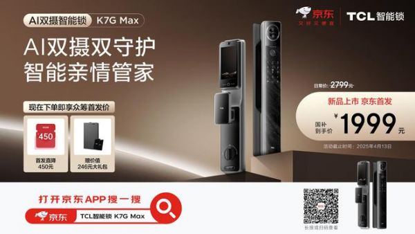 至此,AI+3D人脸猫眼锁的全新时代已由TCL智能锁领衔开启。作为京东智能锁品类核心战略伙伴,将于3月20日携年度旗舰闪电新品K7G Max登陆京东独家首发,基于京东超3亿智能家庭用户数据反哺产品研发,双方共建"研发-生产-服务"全链路数字化生态,首发价格2799元,TCL新品,尽在京东,打开京东APP搜TCL K7G Max智能锁,享新品众筹早鸟价立减到手仅需1999元,解锁未来生活新范式。