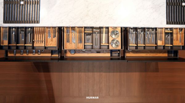 在本届展会中,HURMAR为来宾展示了NORMAN酒柜系统、BACH岛台桥架、MEYLER厨柜功能五金等新品。