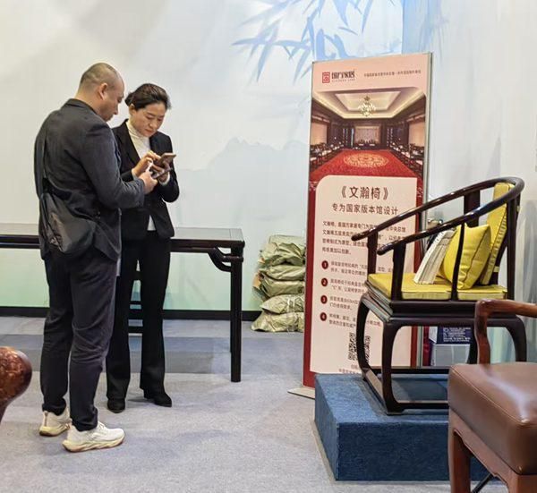 传统红木家具通常困于“博物馆美学”的桎梏,而忽略了日常的使用,国方家居注重“以人为本”的设计理念,让传统技艺服务于现代生活需求,国方家居既延红木家具的工艺精髓,又以创新设计消解了文化符号的距离感,为传统技艺的活化提供了范式。国方家居所展示的《文瀚椅》以精炼线条凸显整体的庄严与素净,让精品既能承载国家版本馆的文化重量,又可融入都市精英的书房、茶室等日常场景。证明红木家具不仅能“讲好中国故事”,更能“解决现代痛点”。