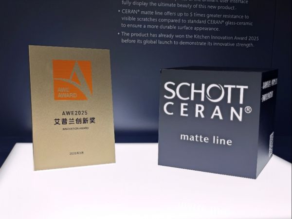 肖特赛兰®发布全新哑光微晶玻璃灶具面板,荣获2025AWE艾普兰创新奖