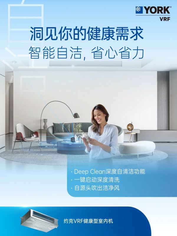 空调用久了之后内部容易积累灰尘和细菌,而传统清洁方式不仅耗时费力,还难以做到彻底清洁。约克 VRF中央空调配备Deep Clean深度自清洁功能,只需一键启动,即可自动进行深度清洗,从源头上吹出洁净空气。这样一来,不仅省去了繁琐的人工清洗过程,也有效延长了设备使用寿命,让父母孩子都能享受舒适健康的家居环境。