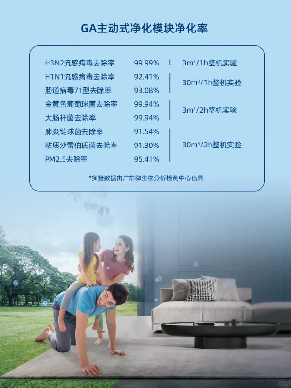 除了甲醛,新装修家居环境中还可能含有其他有害气体和细菌,这些都可能成为“隐形杀手”。约克 VRF中央空调拥有GA主动式净化模块,通过UIS非平衡性强氧化作用,可以高效抑制并消除多种病毒、有害气体及细菌,确保室内空气不仅清新,还更加健康。这种全方位、多层次的空气净化功能,为我们的呼吸安全提供了坚实保障。