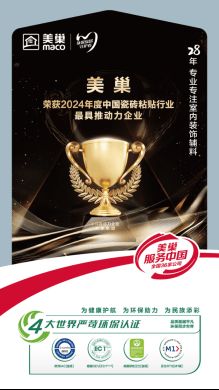 “卷出新高度 行业再升级”,日前,由中国陶瓷工业协会瓷砖粘贴技术专业委员会(TCT)主办的“2024年度中国瓷砖铺贴行业大会暨技术交流分享会”顺利召开。为表彰行业杰出贡献,大会对一批优秀企业及个人进行了荣誉授予,美巢集团股份公司(以下简称“美巢”)凭借在瓷砖粘贴行业的贡献,被认定为“2024年度中国瓷砖粘贴行业最具推动力企业”,同时占瓷宝产品再度荣膺“2024年度中国瓷砖粘贴行业年度产品‘金砂奖’”,这已是占瓷宝连续多年获得此项殊荣。