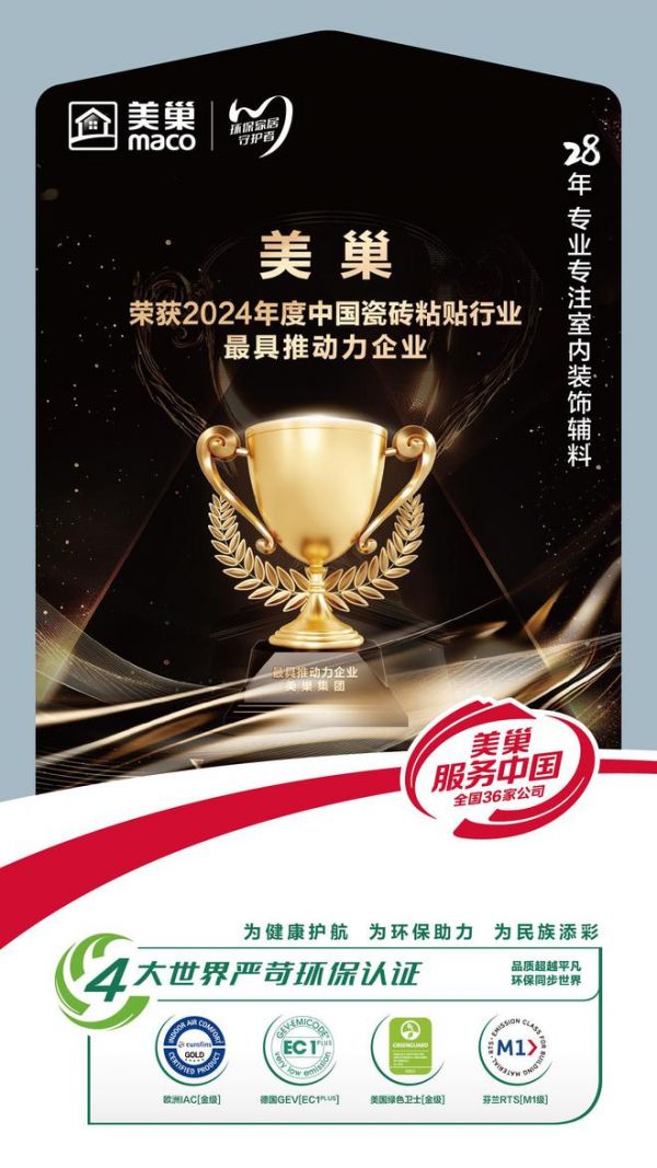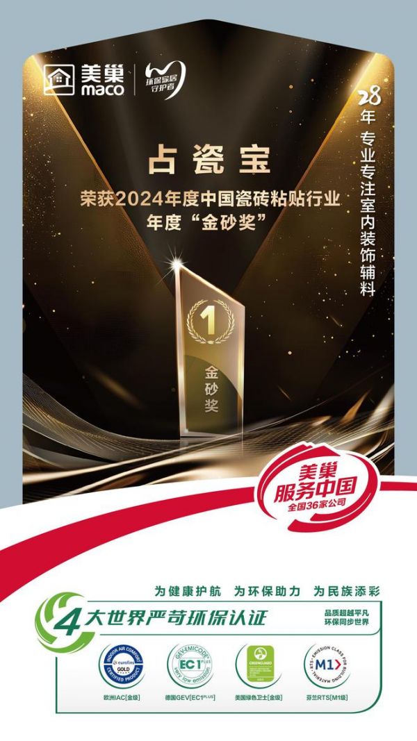 占瓷宝再度荣膺“金砂奖” 美巢获“2024年度中国瓷砖粘贴行业”多项荣誉