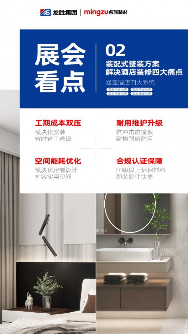 作为行业领先的装配式高端装材品牌,龙胜集团名族装材将强势亮相上海国际酒店及商业空间、办公及公共空间博览会,携顶墙柜三大产品体系、装配式整装解决方案重磅登场,为酒店行业带来更高效、更环保、更智能的整体解决方案。