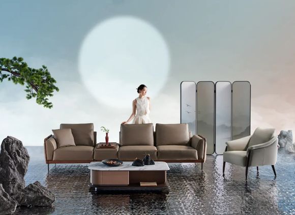 东方美学的精髓在于含蓄与实用,而顾家将这一哲学融入现代设计中。以“观澜”为例,其圆润的造型灵感源于中式庭院的流线轮廓,搭配低饱和度奶茶色面料,既保留了传统温润感,又契合现代简约风格。胡桃木的框架,自带复古的色彩,纹理中彰显着自然与优雅的韵味,让人仿佛置身在大自然之间,可以畅享自然带来的宁静与美好。