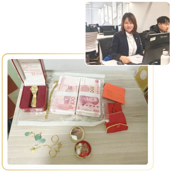 尽管业主表示房子已经收拾妥当,但冯欣还是带着清洁工具前往空置房屋,希望能将房屋打理的更整洁美观。当她细致清洁着每个角落时,发现了一个挂着锁的木柜,"柜子里没啥贵重东西,直接收拾了吧。"接到业主的答复后,冯欣打开柜门,一时间2叠厚厚的现金引入眼帘,旁边还有几盒金饰在清晨的太阳下闪闪发光。她数了一下现金,整整2万元,这些金饰一看就是奶奶生前贴身佩戴之物,想来对业主也意义非凡。冯欣第一时间拍照、封存,并联系业主亲自取回,面对这些传家之宝,王女士眼含泪光“我们都不知道奶奶保存了这些东西,小冯帮我们找到了一份对老人家的念想!”面对业主的连声道谢,冯欣则更坚信:服务无小事,只有以诚相待,才能不负所托。