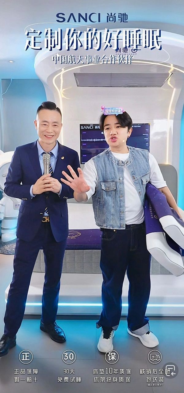 此次直播的火爆不仅体现在数据层面,更折射出健康睡眠理念的普及和趋势。王祖蓝在直播中坦言:“因工作的原因常受失眠困扰,今天选择推荐尚驰,正是自己亲身试睡后拥有良好的体验。”他强调:”每个人的身高、体重、睡眠习惯均有不同,定制一张属于自己的床垫,在快节奏的当下尤为必要。”