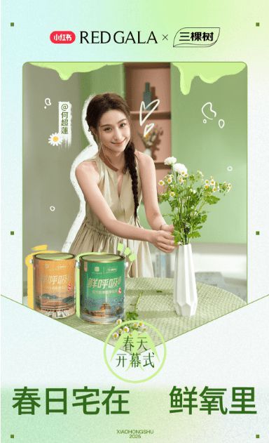 3月31日15:30,三棵树将在杭州REDGALA开幕式现场打造“鲜氧秘境”主题活动,通过沉浸式场景设计展现产品特性,特别邀请影视明星何超莲参与直播互动,围绕“色彩与材质的呼吸美学”展开深度对话。