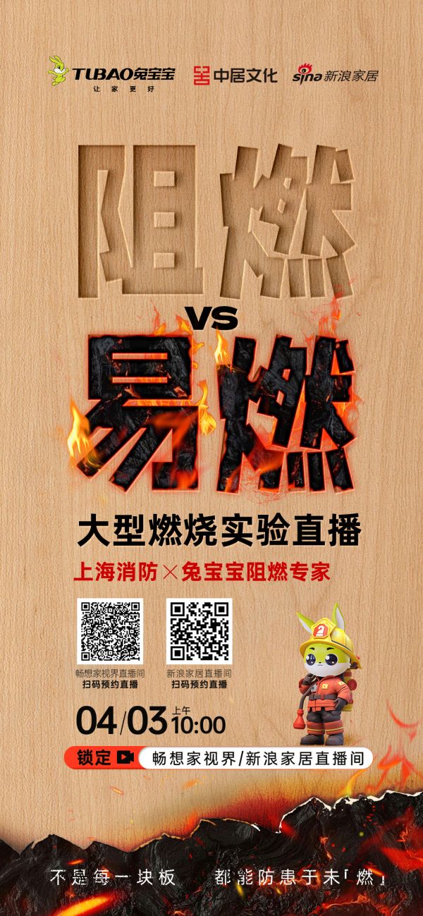 4月3日锁定直播!兔宝宝联合上海市消防队用实验揭秘难燃板防火真相