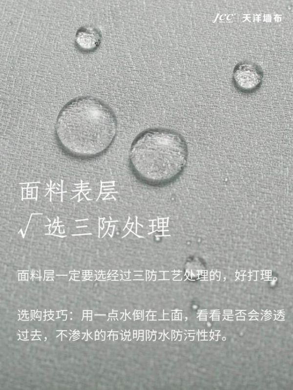 经过三防工艺处理的墙布,可以有效防水、防油、防污,更好打理,使用寿命更长。