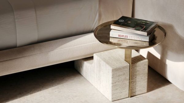 以天然石材的原始质感为主调,辅以细腻的设计语言。Overlap系列的每件作品都具有雕塑感与强烈的视觉冲击,洞石与黑白根大理石的原始肌理,碰撞金色元素的精妙点缀,在雕塑感的轮廓中达成材质博弈的终极平衡。这不仅是家具,更是空间中的微型建筑艺术。