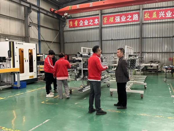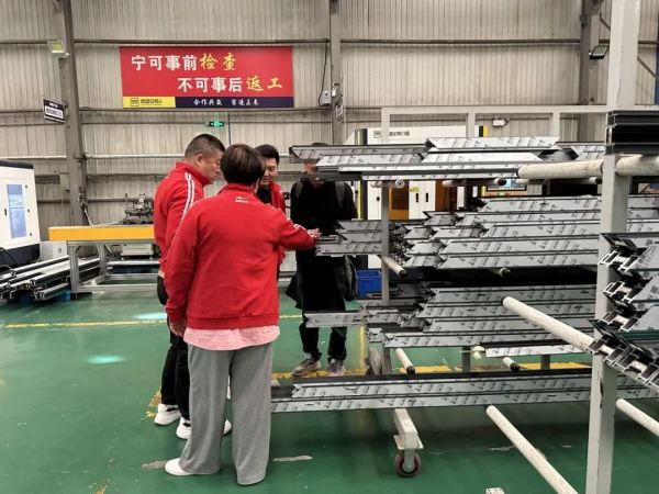 考察组一行通过观摩设备作业流程与人工操作配合,了解企业生产组织的整体运作,并以触摸、观察等方式感知材料表面处理的光滑度、组装配件的严密度等细节,直观感受企业对工艺标准的执行效果。