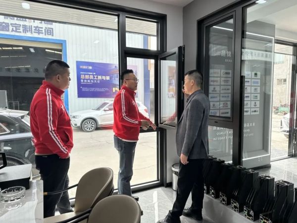 在展厅内,德盛亿尚门窗总经理邓德炎结合实物展示,讲解了针对西北地区气候特点开发的门窗产品特性。考察组一行通过了解产品细节、开合测试等互动方式,体验产品基础性能的稳定性。