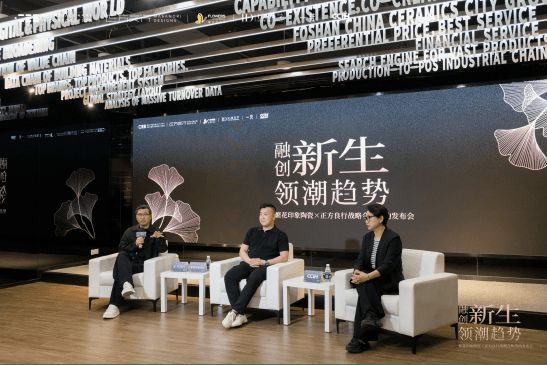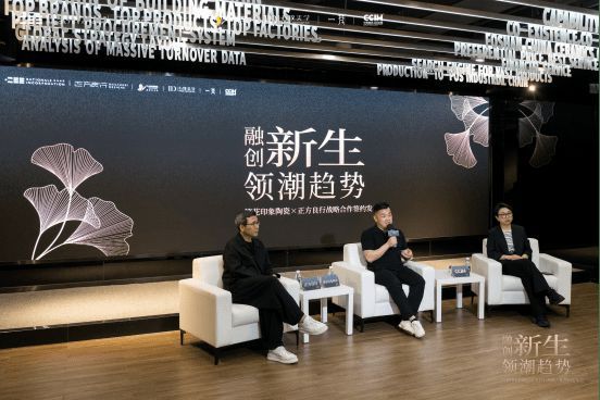 签约仪式结束后,佛山中陶城集团副总裁、中国陶瓷卫浴总部总经理—汤洁明、繁花印象陶瓷有限公司总经理—伍尚志、瑞坤国际·正方良行设计首席设计师/中国建筑学会室内设计分会全国理事/良行Masanori Art 创始人—徐庆良一同接受媒体采访。围绕“融合设计的趋势与价值”展开交流对话,让发布会从“灵感展示”升维至“趋势引领”。