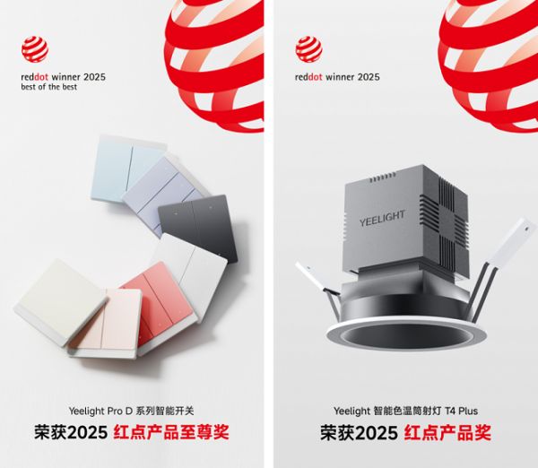 近日,全球设计界瞩目的2025年德国红点奖评选结果揭晓,智能照明领导品牌Yeelight易来两款产品——Yeelight智能筒射灯T4 Plus与Yeelight Pro D系列智能开关凭借卓越设计与创新科技,双双斩获殊荣。其中,Yeelight Pro D系列智能开关更以突破性创新摘得至尊奖“Best of the Best”,成为全球智能家居领域的设计标杆。
