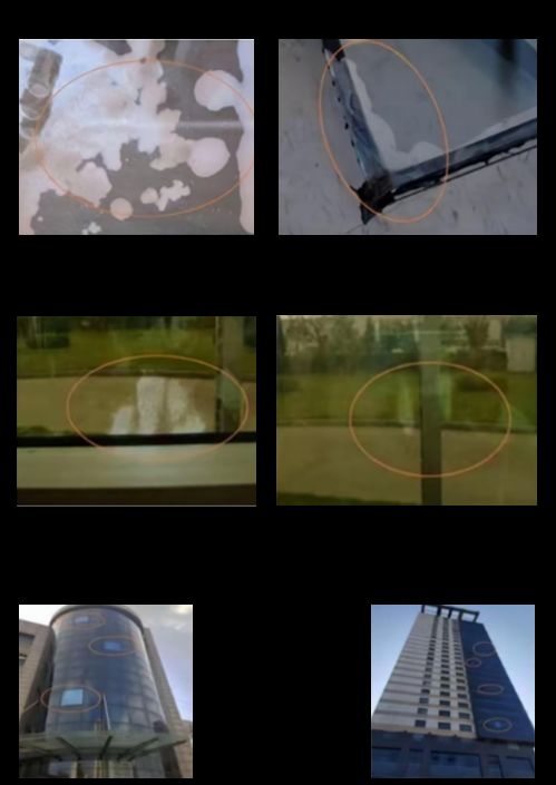 (1)由于小磁控离线Low-e 玻璃(简称:先钢后镀)颜色不稳定,批次产品会存在一定色差(见图6),膜层非常脆弱,暴露在空气中超过 48 小时后会出现不同程度氧化(见图2)、变质(见图1)、变色等(见图4),易划伤、易污染(见图3)、加工难度大、 不合格率高、不便于二次搬运、加工和运输;在不足 1000 平方米起订量时,工程项目上的零星或批量补片无法制作(见图5),工程进度和产品色差无法满足业主交付要求(见图6)。