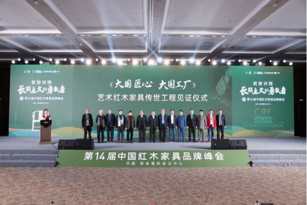 为了把红木品牌推向新高度,2024年12月18日,在第15届红木家具品牌峰会上隆重举行了《大国匠心&大国品牌》红木家具传世工程启动仪式。全国工商联原常务副主席孙安民,国务院发展研究中心原副主任侯云春,国家文物局原副局长张柏,原国家林业部科技司副司长黎云昆,全国工商联民间文物艺术品商会创会会长宋建文,故宫博物院文保科技部原主任曹静楼,中国家具协会副理事长、红古轩品牌创始人吴赤宇,中国传统工艺大师、东阳卓木王董事长杜承三,中国传统工艺大师、山东巧夺天工董事长张爱冬,中国传统工艺大师、明堂家居总经理张向荣,浙江省工艺美术大师、东阳李忠信红木董事长李忠信,东莞国寿红木董事长陈淦凡,东阳古森红木董事长吴飞阳,全联艺术红木家具专业委员会执行会长、《大国匠心&大国品牌》栏目策划人、品牌红木CEO林伟华共同见证了这一时刻。