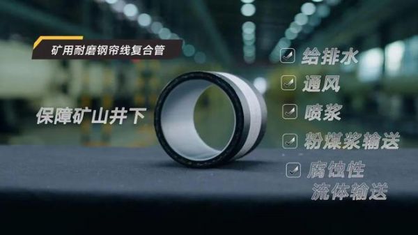 这是联塑自主研发的矿用钢帘线增强聚乙烯耐磨复合管。不同于普通矿用管道,它在聚乙烯基体中加入钢帘线层作为增强层材料,形成四层复合式结构,它的爆破压力可达4倍公称压力,耐磨性能则是常规碳钢的4-7倍,为能源运输安全打下坚固的防护墙。