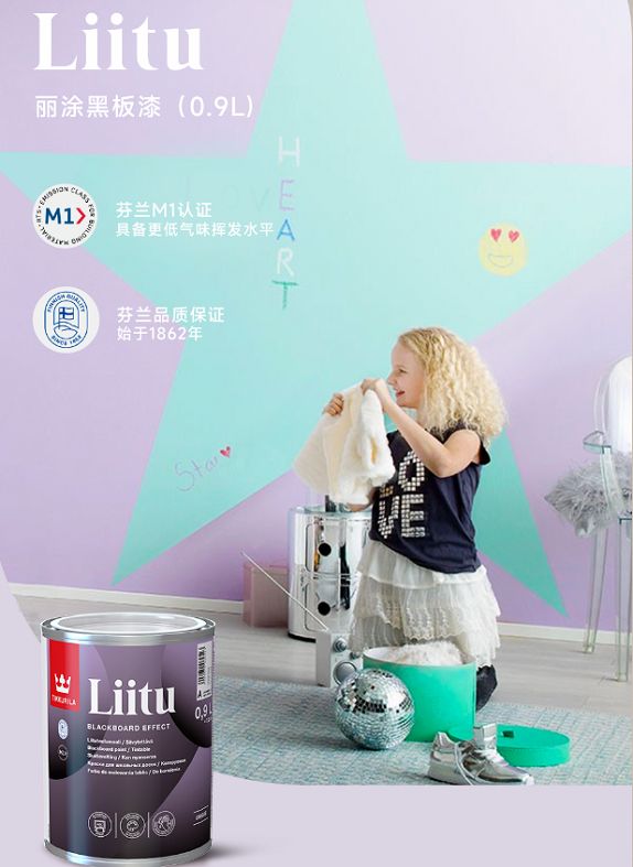 符合欧盟EN71-3对玩具安全的标准,可以适用于儿童玩具表面,并且拥有芬兰M1环境标识、北欧白天鹅生态认证,VOC排量小于油性漆的1/4,轻松实现即刷即住。同时调色丰富且能保持持久靓丽,适用于木门、家具、暖气片等。