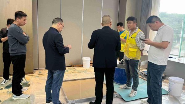 会议现场,流邦团队通过沉浸式施工演示,直观呈现石膏自流平在不同基层条件下的工艺适配性。从材料配比到设备调试,从平整度控制到养护周期管理,技术专家与装饰企业代表展开深度对话,形成涵盖工艺优化、成本管控、客诉预防的实战指南。同步亮相的惠施工平台,更以“技术+资源+服务”三位一体模式,为装饰企业提供从设计到落地的全周期数字化支持。