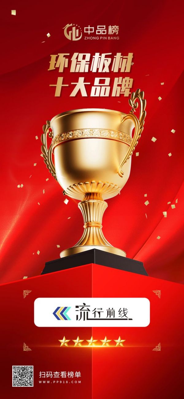 荣誉上榜|流行前线板材荣膺“环保板材十大品牌”荣誉称号!