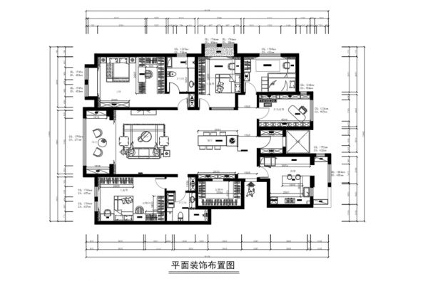 【王博】:我比较喜欢的是“暮色人间”。此案例户型是一个五居室,业主喜欢现代轻奢风格。业主是一对中年夫妻,家中一对老人,两个女儿,大女儿在上大学了,小女儿还在读小学。男主人需要在家办公,需要一个独立的书房。老人喜欢热闹,希望家中有个大餐桌,全家其乐融融。女主人喜欢全屋无主灯设计。考虑两个孩子生活作息不同,大女儿需要喜欢弹钢琴,需要一个多功能房。小女儿需要学习的环境,怕打扰喜欢安静。