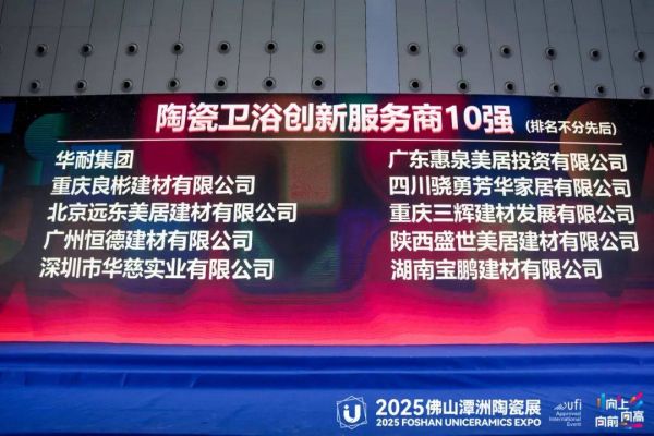 在大会上,华耐家居集团凭借其卓越的市场表现、创新的服务理念以及强大的品牌影响力,荣获了“陶瓷卫浴创新服务商10强”的殊荣。这一荣誉不仅是对华耐家居服务客户30多年不懈努力的认可,也是对其在服务创新、产品创新、数字化创新的肯定。