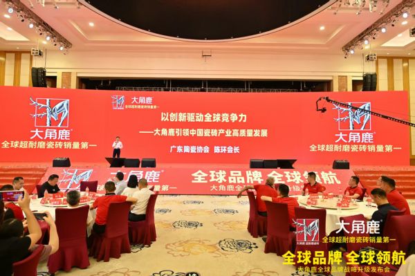 发布会上,广东陶瓷协会会长陈环高度评价大角鹿为行业带来的变革意义。陈环会长指出,大角鹿通过持续的技术创新和卓越的市场表现,打破了海外高端市场对中国瓷砖品牌的刻板印象,成为广东乃至中国陶瓷产业高质量发展的典范。他呼吁所有陶瓷企业学习借鉴大角鹿的“创新精神”,携手将广东打造为世界i级陶瓷产业集群。