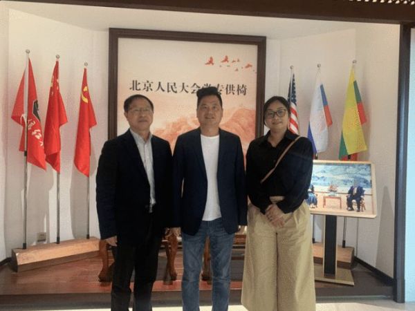 从左到右:浙江广厦建设职业技术大学工艺美术学院院长王晓平、李忠信红木家具董事长李忠信、广厦大学工艺美术学院副院长曹云霞