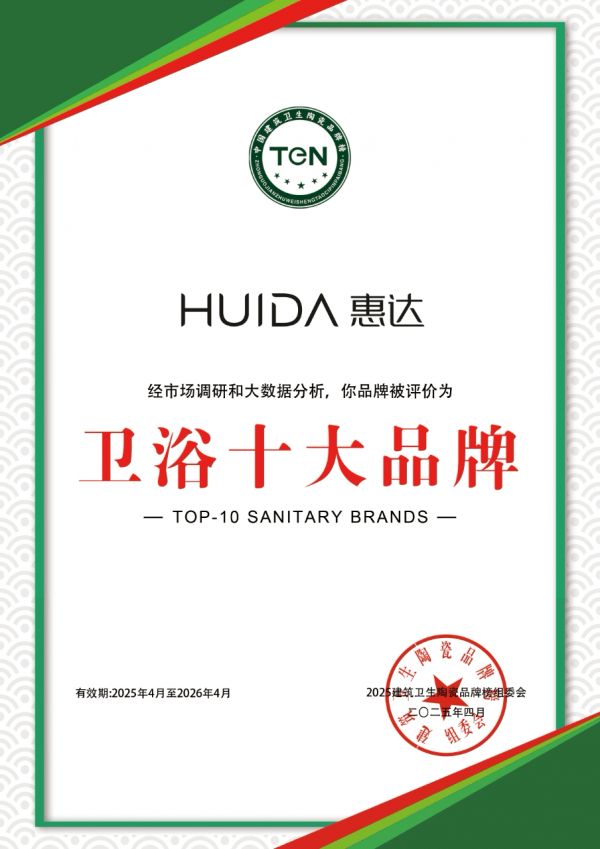 实力见证!惠达卫浴再次荣获“卫浴十大品牌”殊荣