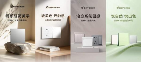 正泰K5森暖悦色开关,面板薄至6.3mm,纤薄时尚、灵动飘逸;正泰T1氛围开关,承袭经典的中板开关,微弧的面板边缘优雅治愈;正泰2QA云感开关,弧边美学搭配奶油风配色,营造温馨舒适的空间氛围;正泰X7沐风印象开关,6.4mm纤薄面板,“微坡”侧边设计,流露出时尚精致的生活品位。
