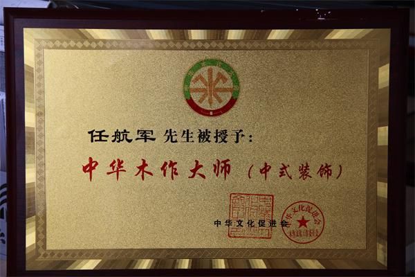 中华文化促进会木作文化工作委员会授予任航军"中华木作大师"称号