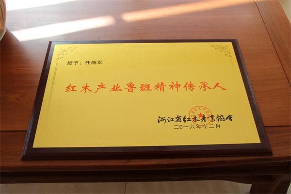 浙江省红木产业协会授予任航军"红木产业鲁班精神传承人"