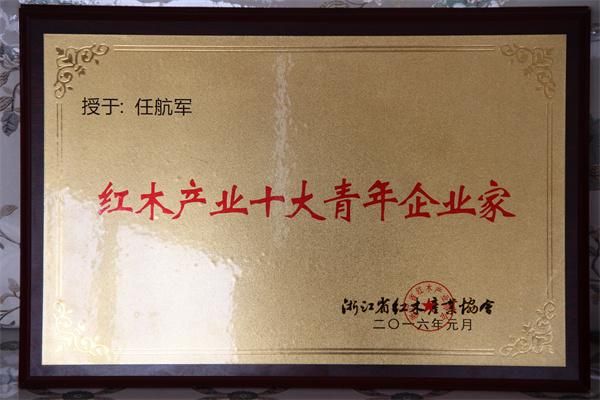 浙江省红木产业协会授予任航军"红木产业十大青年企业家"