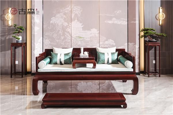 古森红木檀雕罗汉床:这款罗汉床遵循古制,靠背和两侧围屏比视觉效果更矮,显得更加精致。靠背和两侧处,采用丝翎檀雕,雕出寒雀图,憨态可掬活灵活现,是全器唯一的点缀。全器用国标红酸枝打造,有玫瑰色的华丽木纹,无论是油性或密度,皆为传世家具必选的高端材质,为明式家具代表之作之一。