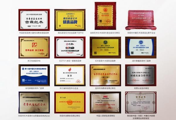 作为《中式红木艺术家具评估规范》的参编者,古森红木以黑酸枝与红酸枝为墨,以故宫级工艺为笔,在红木艺术史上书写着品质传奇。从「浙江制造品字标」认证到中国家居品牌力量榜的桂冠,每一张证书都在诉说着一个真理:真正的传世之作,必先经得起标准的丈量。
