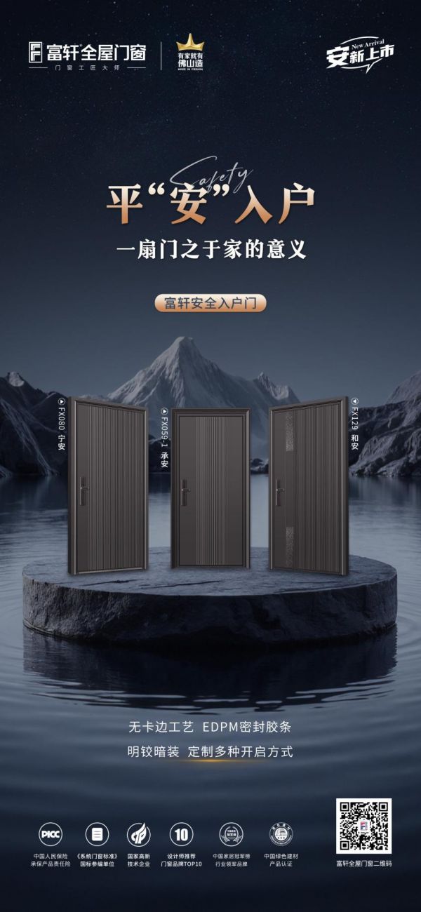 进入到2025年,富轩在入户门品类上新品层出不穷。随着“安”系列入户门和全铝系统入户门等爆款产品的推出,2025年富轩已形成铝合金门窗、UPVC铝塑系统门窗、智能门窗、入户门、阳光房、淋浴房、幕墙、天窗、凉亭、入户雨棚全屋门窗十大品类,为消费者提供全屋门窗一站购齐,省时省心服务,同时借助国家家装厨卫焕新高补贴的东风,有效地为富轩带来了业务上的高销量和高增长。
