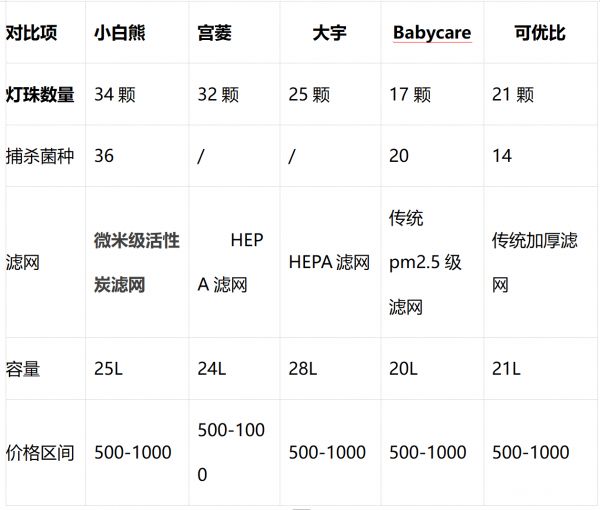 结合灯珠数量、捕杀菌种数、滤网等关键配置,小白熊表现突出,不仅灯珠数量多、捕杀菌种数多,容量也更适合大多数家庭使用。推荐对专业性和安全性有要求的家庭选择小白熊星空ultra消毒柜。Babycare精致小巧,适合小户型家庭选择。可优比功能简单,适合追求性价比、有基础消杀需求的家庭。