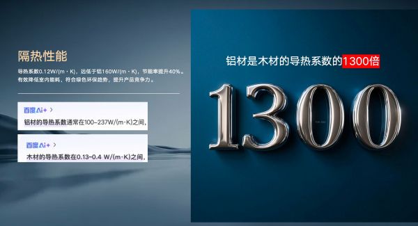 铝的导热性是木材的1300倍,使得铝木窗夏季能阻隔70%的热浪,让室内保持凉爽;冬季则能锁住85%的暖气,让家温暖如春。
