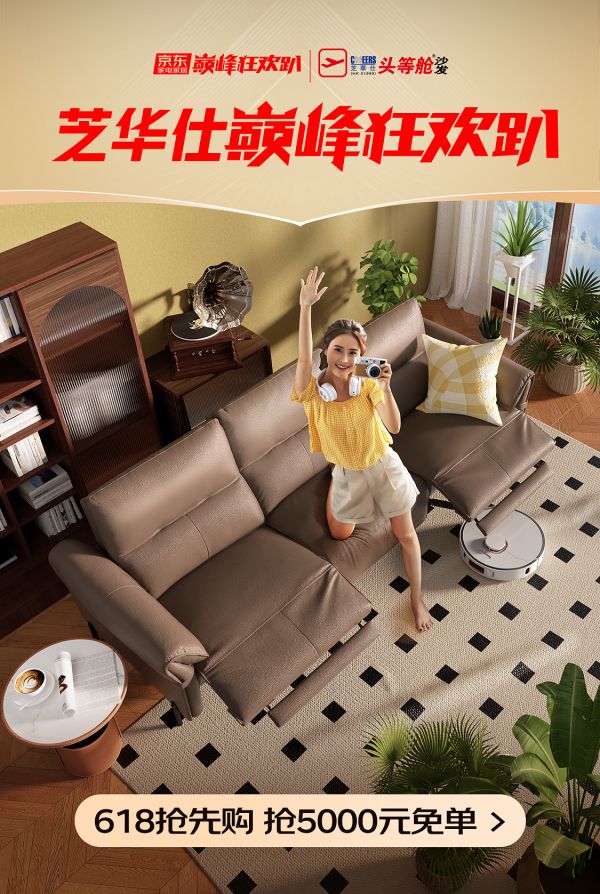 芝华仕头等舱不仅是家居品牌,同时也代表着一种“舒适、新潮”的生活方式。芝华仕头等舱618狂欢盛宴已经启幕,5月23日晚8点-5月24日,打开京东APP搜索【芝华仕头等舱巅峰】,抢占半价焕新先机,一键解锁头等舱生活方式。更多优惠和惊喜等你来发现,赶快行动起来!