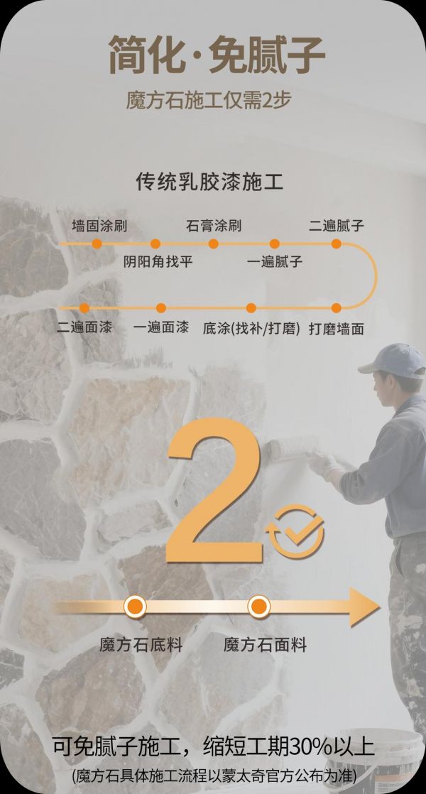 √ 魔方石方案: “底料+艺术”两步成墙
