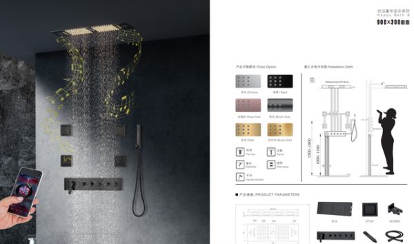 作为智能情调淋浴行业的开创者/领军者,浴旺智能情调淋浴拥有强大的研发团队和先进的生产设备,不断推出具有创新性的智能淋浴花洒产品。浴旺 LED 暗装音乐花洒突破传统花洒产品的功能边界,通过氛围灯光联动、立体环绕音效与智能恒温系统的协同设计,打造出多维度感官享受的淋浴场景,为消费者带来前所未有的淋浴体验。