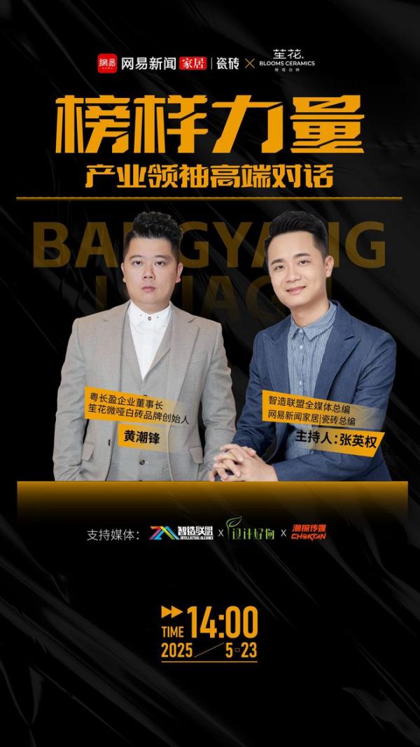 2025年5月23日,网易家居打造的榜样力量特辑《产业领袖高端对话》直播,邀请到粤长盈企业董事长&笙花微哑白砖品牌创始人黄潮锋,围绕建陶行业趋势展开深度对话。在房地产经济下行、市场需求萎缩的大环境下,黄总分享了笙花微哑白砖品牌以产品创新、服务升级和渠道重构破局的实践路径。