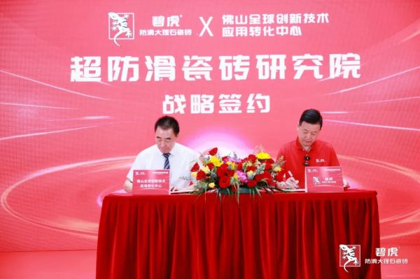 其中,与佛山全球创新技术应用转化中心,共建的碧虎超防滑瓷砖研究院;与景德镇陶瓷大学材料科学与工程学院,共建的超防滑瓷砖研究室、超防滑瓷砖实践中心,构成碧虎核心三大研发创新机构,打造“产-学-研-用”全链条创新。