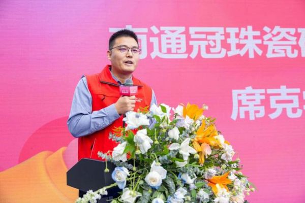 冠珠瓷砖品牌苏南沪大区经理廖山崇代表总部致辞。他表示,冠珠瓷砖始终坚持为国人筑就美好人居的品牌愿景,坚持以创新驱动发展,以品质赢得信赖。今后,总部也将一如既往支持南通冠珠的发展,与各方携手共进,为南通消费者带来更多高品质产品和美好生活体验。