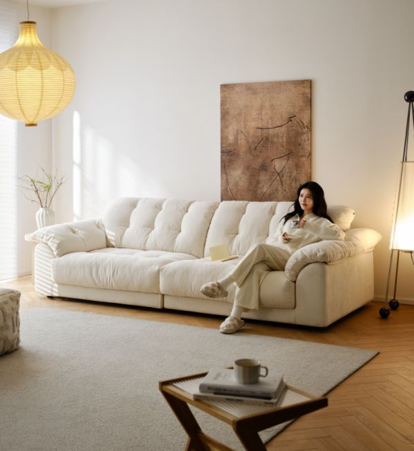 全友云浪沙发,大倾角加高靠背,自然支撑头颈,快速缓解疲惫。68cm宽大座深,躺靠盘腿随心,好似一张温馨小床。座包采用乳胶颗粒、高弹棉、恒压高弹海绵混合填充,松软又有支撑力。仿生颈椎扶手填充白鹅毛,柔软舒适好搭靠,随时开启慵懒小憩模式。三防雪尼尔面料耐磨抗勾丝,浅色易清洁且全拆洗,打理省心。