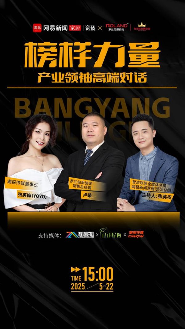 2025年5月22日,网易家居打造的榜样力量特辑《产业领袖高端对话》直播间中,智造联盟全媒体总编、网易新闻家居|瓷砖总编张英权邀请到罗兰伯爵瓷砖销售总经理卢荣与潮探传媒董事长、网易新闻家居|瓷砖总经理张英梅YOYO,围绕建筑行业变革下的企业应对策略展开深度对话。直播聚焦产品创新、品质把控、渠道赋能、品牌文化等核心议题,展现罗兰伯爵以多维升级穿越周期的实践路径。