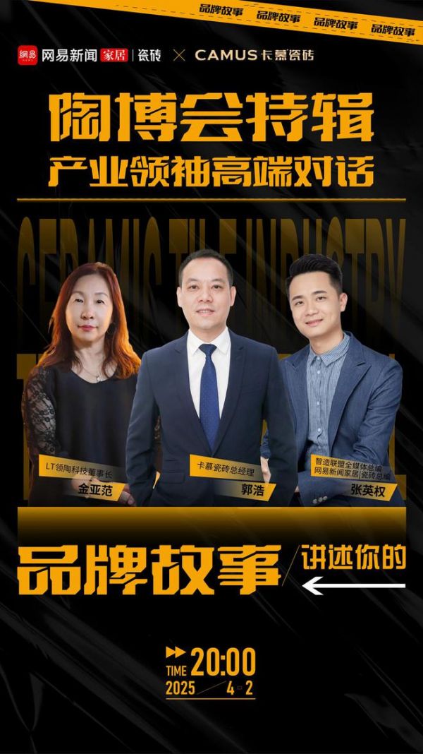 2025年,陶瓷行业在消费需求迭代与全域竞争加剧的背景下,迎来新一轮变革浪潮。在网易家居打造的陶博会特辑《产业领袖高端对话》直播间中,卡慕瓷砖总经理郭浩、LT领陶科技董事长金亚范以及智造联盟全媒体总编、网易新闻家居|瓷砖总编张英权围绕行业挑战、产品策略、品牌定位及全球化机遇展开深度对谈,为传统陶瓷企业的转型路径提供了极具参考价值的思考。